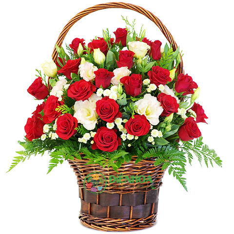 Giỏ hoa hồng đỏ cát tường được thiết kế theo tone màu trắng đỏ, mang lại cảm giác tươi tắn, dễ thương. Giỏ hoa chứa đựng bao cảm xúc của tình yêu nồng nàn, say đắm. Quả là món quà tuyệt vời để gửi tặng người yêu thương của bạn.
