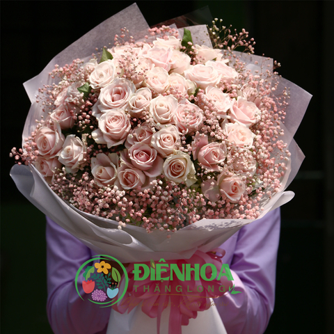 Bó hoa gồm hoa hoa hồng phấn, babi, phụ liệu và giấy gói cao cấp. Bó hoa vừa nhẹ nhàng vừa lãng mạn. Bó hoa hồng phấn và babi dễ thương là món quà không thể thiếu để tặng vợ, bạn gái đặc biệt khi đó là những cô gái trẻ trung, yêu thích màu hồng.