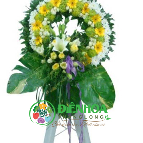Vòng hoa tang lễ được thiết kế theo tông màu tươi sáng gồm hoa cúc trắng, hoa cúc xanh, hoa đồng tiền, hồng vàng, hoa loa kèn. Theo truyền thống dân tộc “nghĩa tử là nghĩa tận” vậy nên khi bạn không thể đến đưa viếng vì điều kiện địa lý hoặc công việc thì gửi điện hoa chia buồn là một lựa chọn hữu hiệu. Dịch vụ chuyển phát hoa chia buồn của chúng tôi sẽ thay bạn chia sẻ nỗi đâu buồn với gia đình người mất và động viên, an ủi tinh thần của họ.